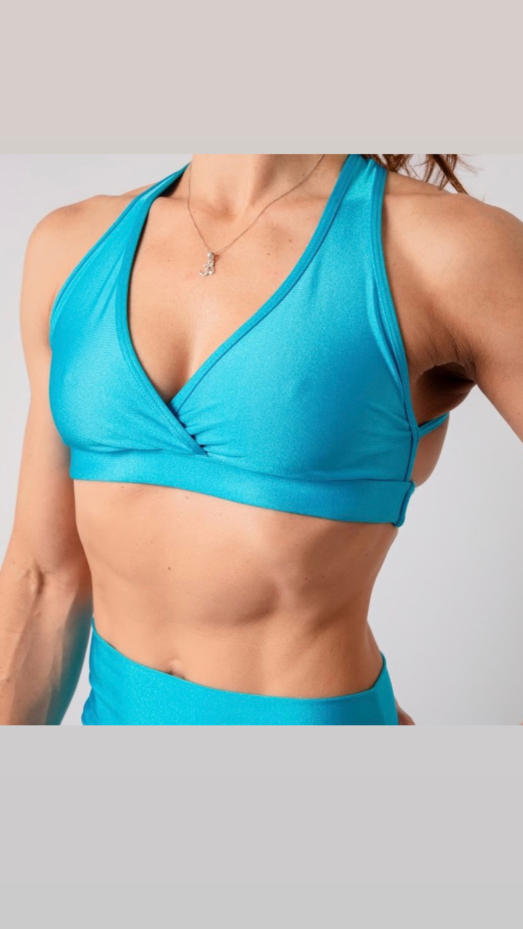 Com a parte da frente trespassada e um decote em arco nas costas, este top garante um ajuste firme e seguro, além de um visual elegante e versátil para qualquer atividade física. O tecido de alta qualidade é leve, respirável e de secagem rápida, perfeito para acompanhar seu ritmo no treino sem comprometer o estilo.